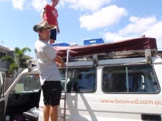 We had a quick safety briefing on how to drive on the island and then when the rest of the group arrived back with the food we packed it into boxes, loaded it on top of the 4wd troop carrier and headed off to catch the barge to Fraser Island.